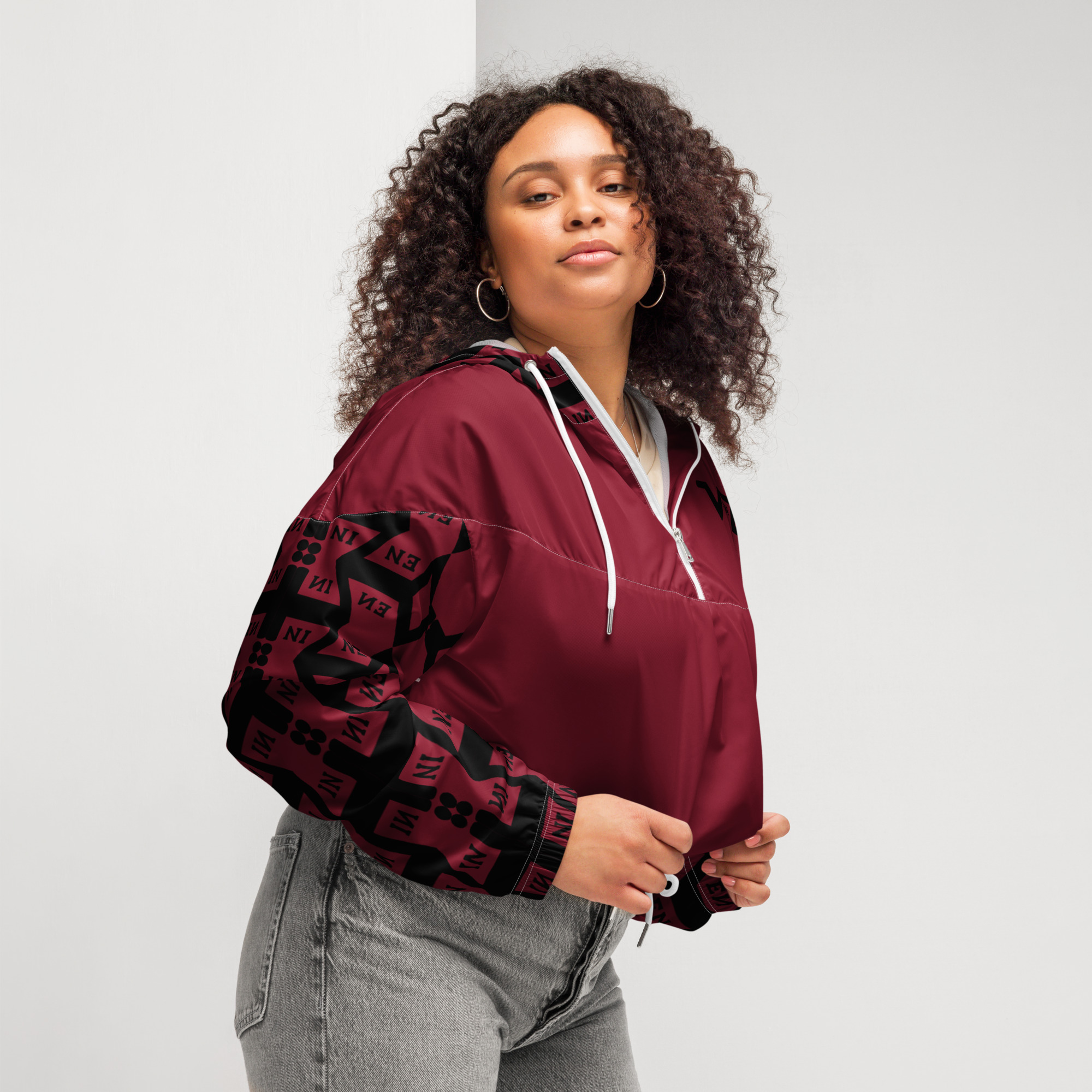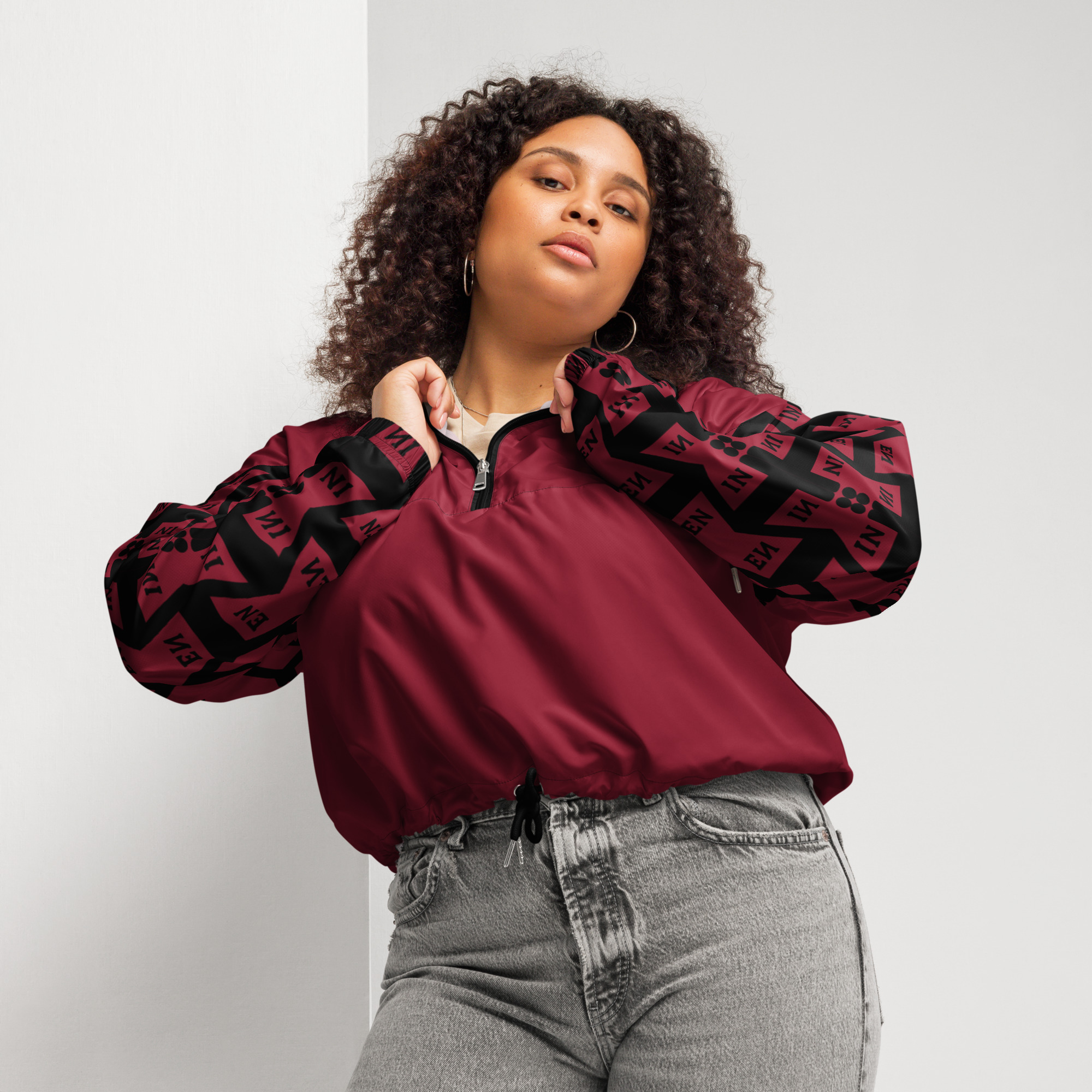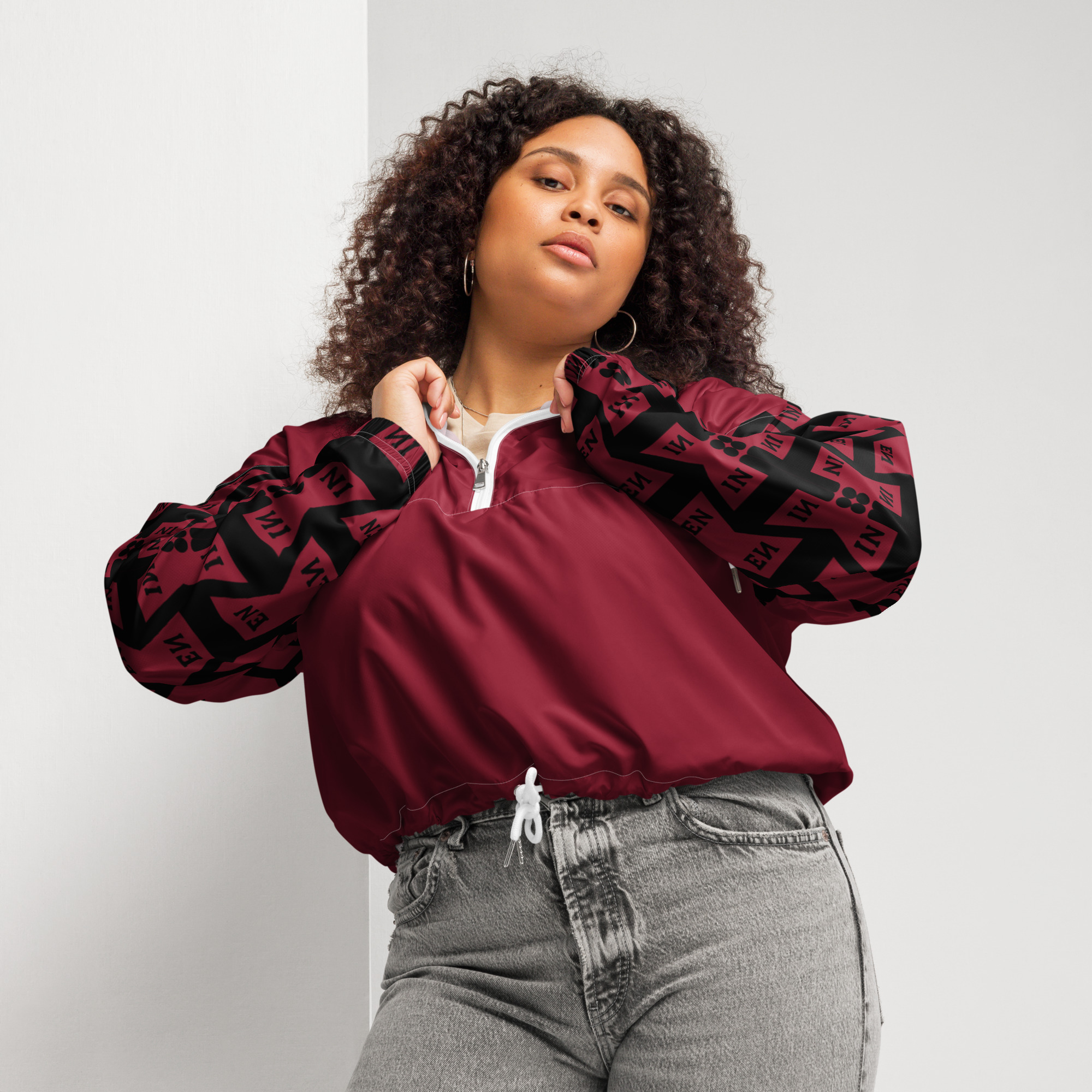 VENZINI BLACK – Burgundy Women’s cropped windbreaker
