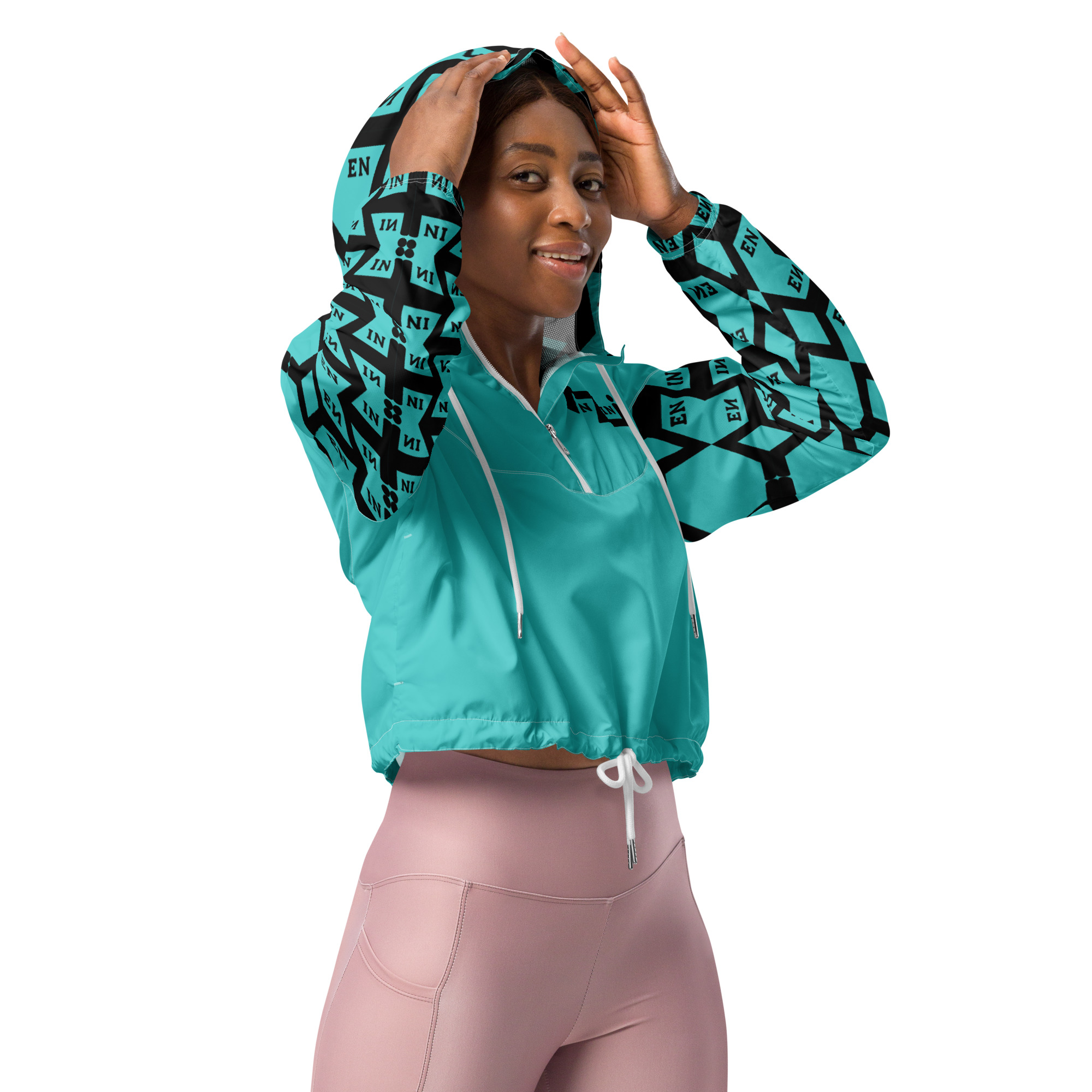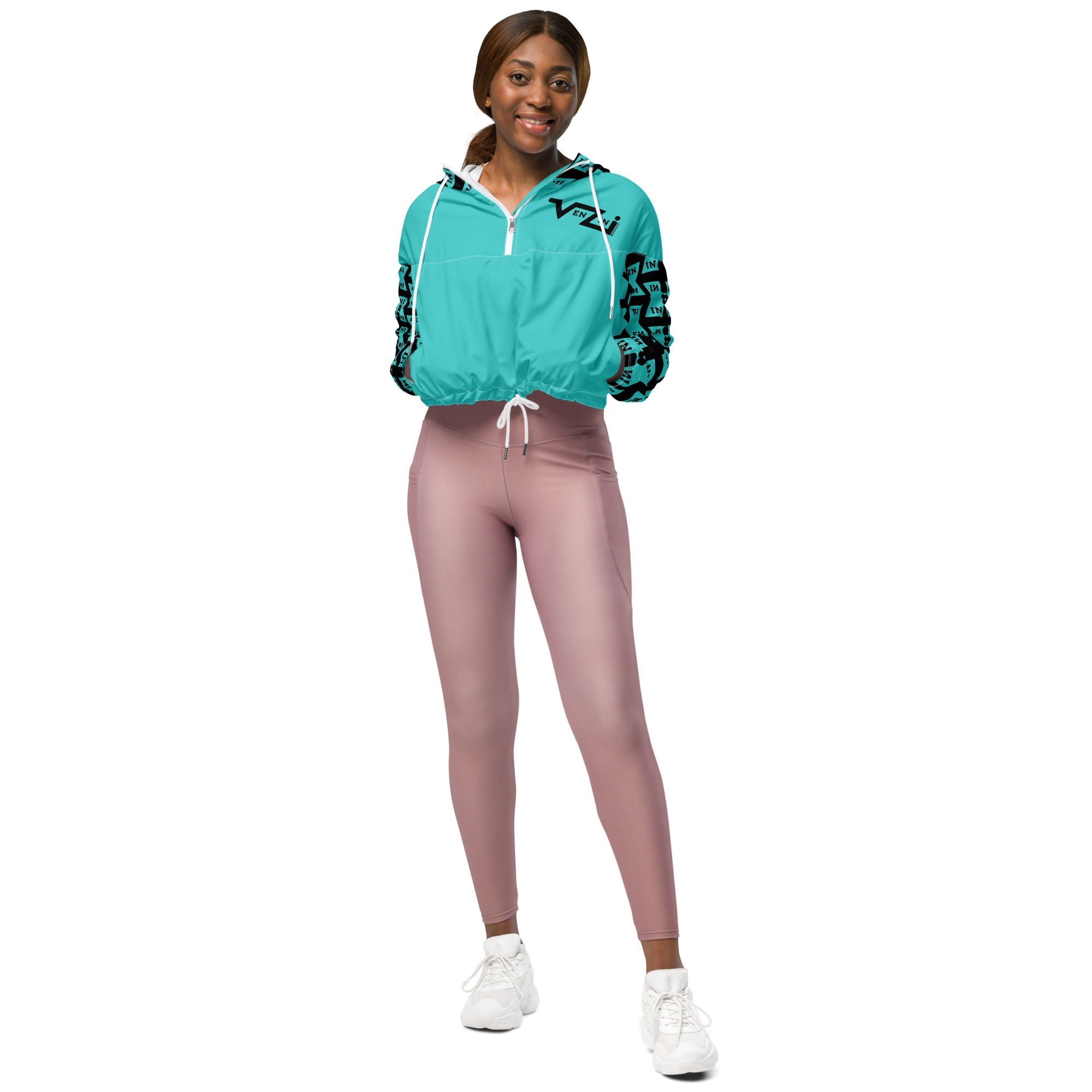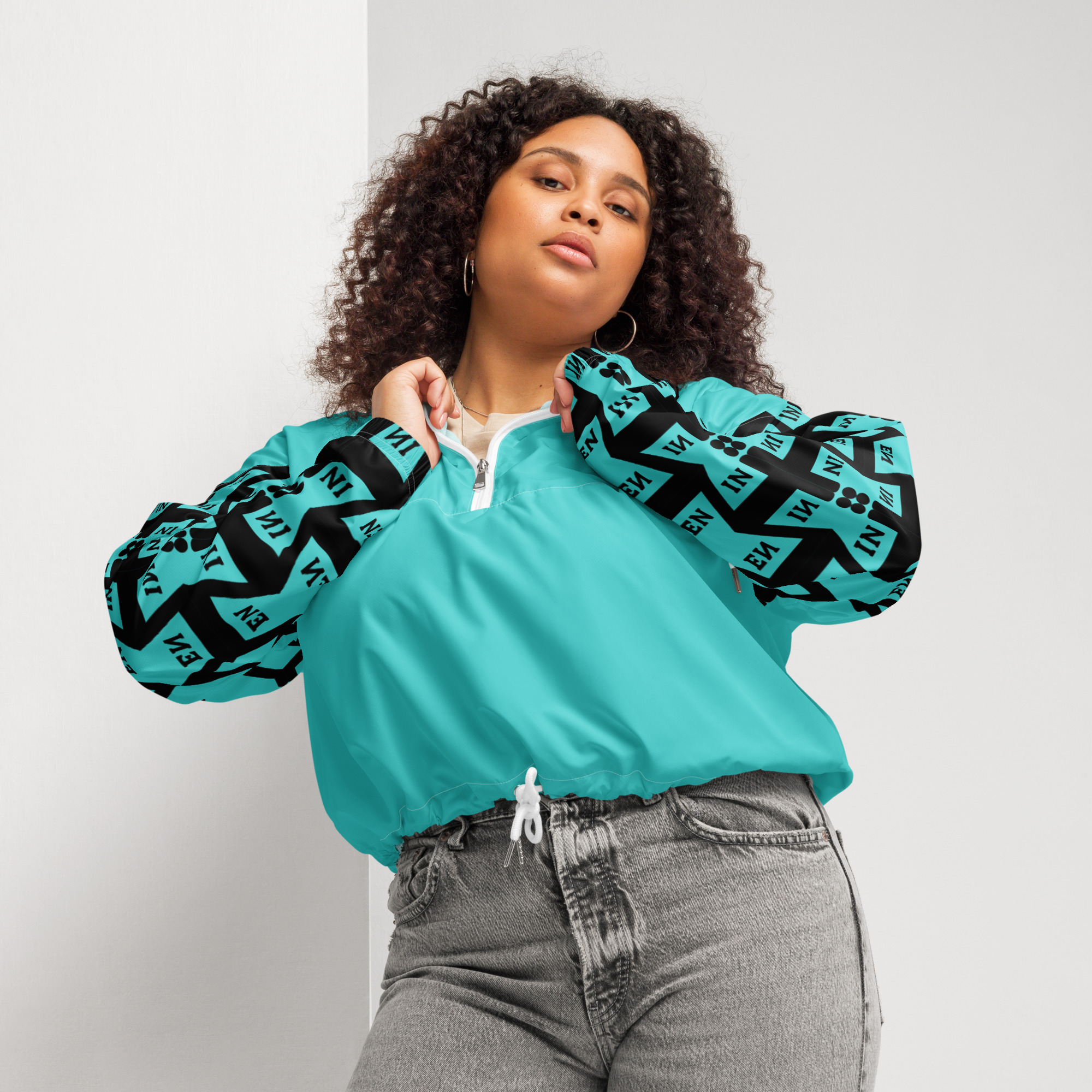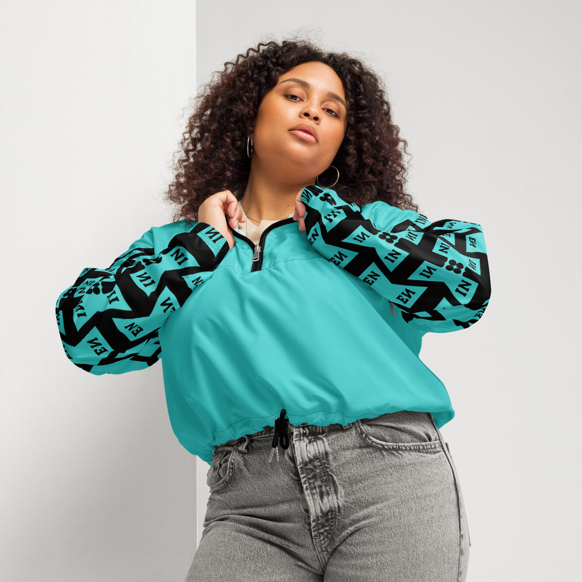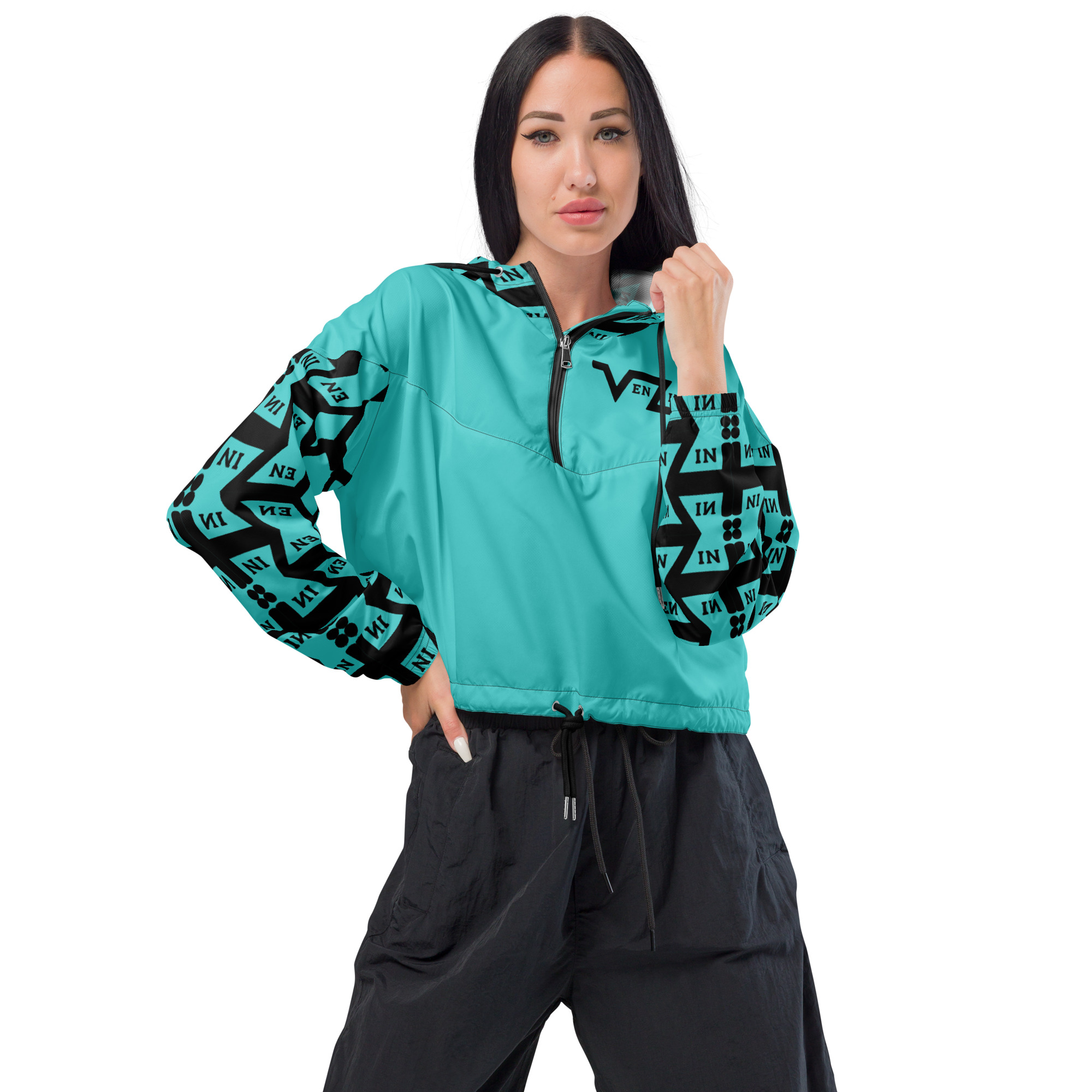 VENZINI BLACK – Turquoise Women’s cropped windbreaker
