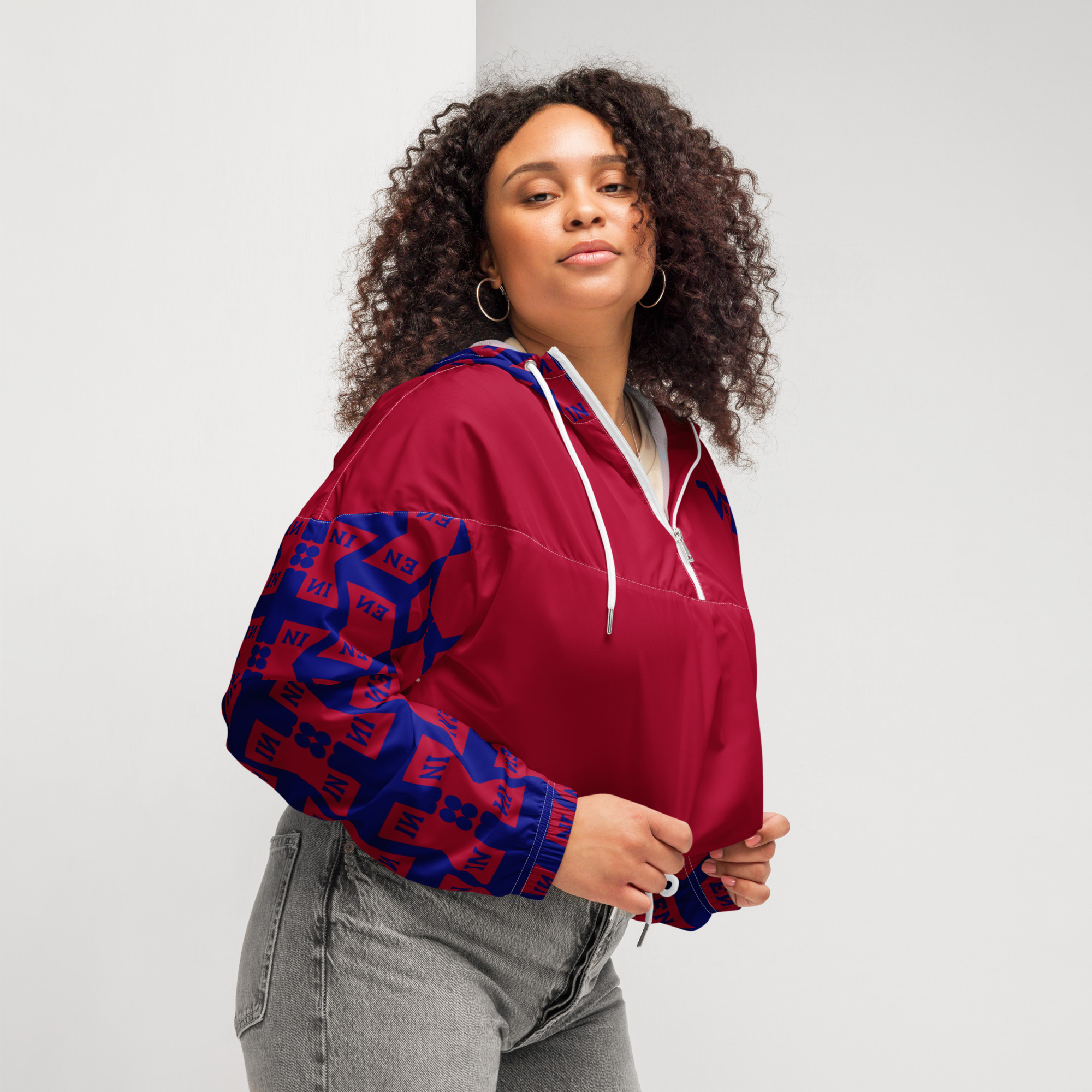 VENZINI BLUE – Carmine Red Women’s cropped windbreaker