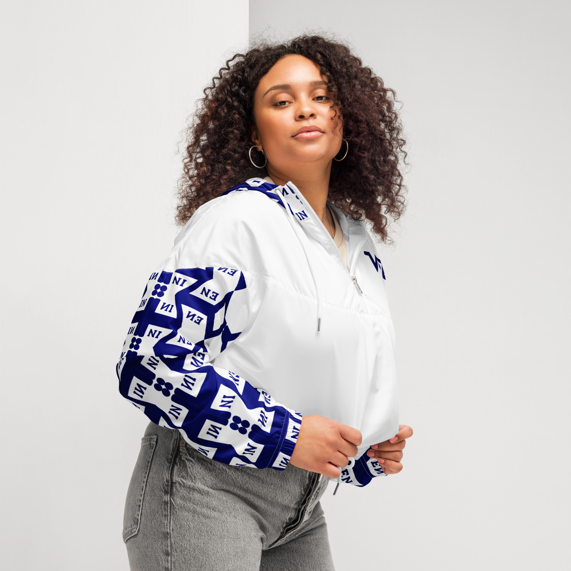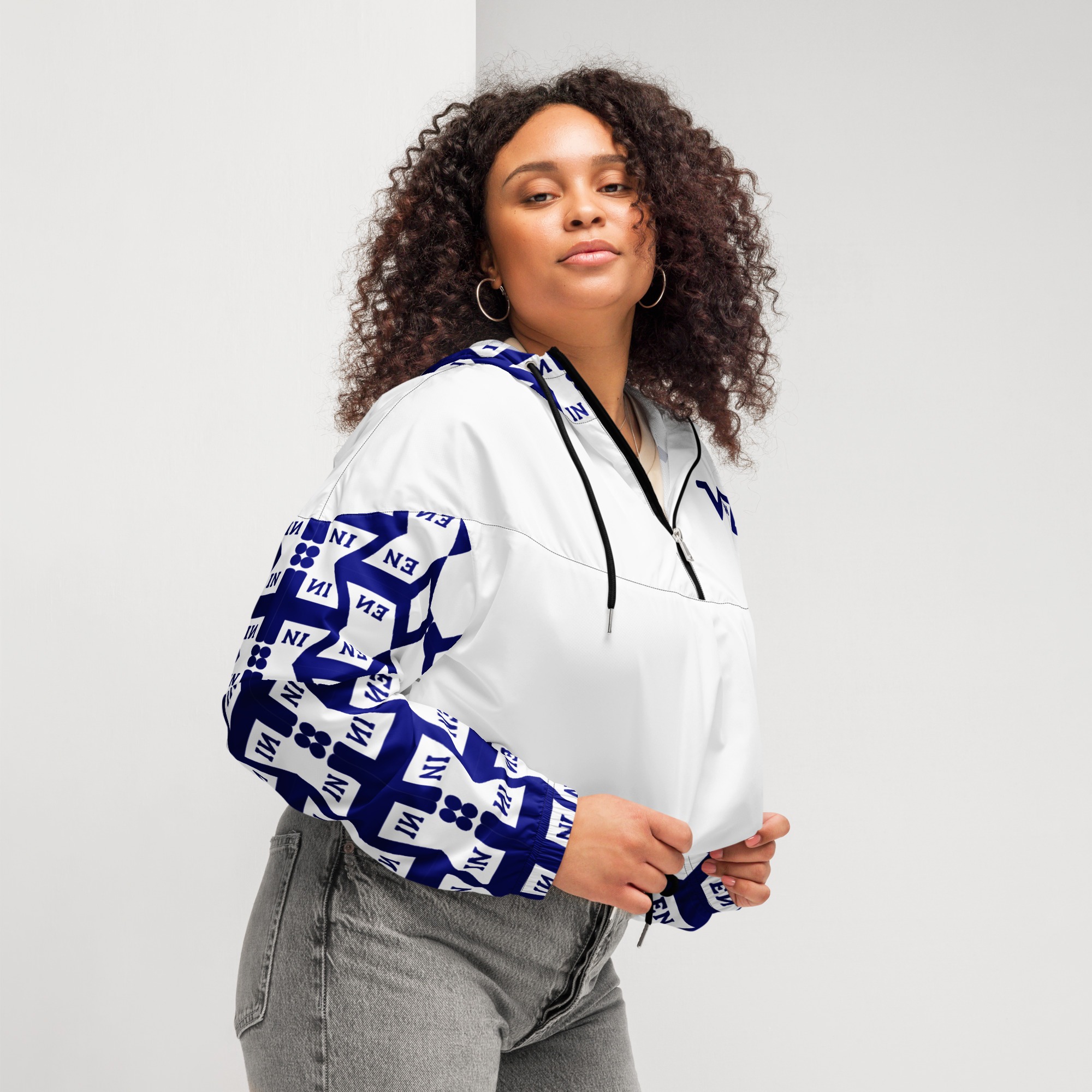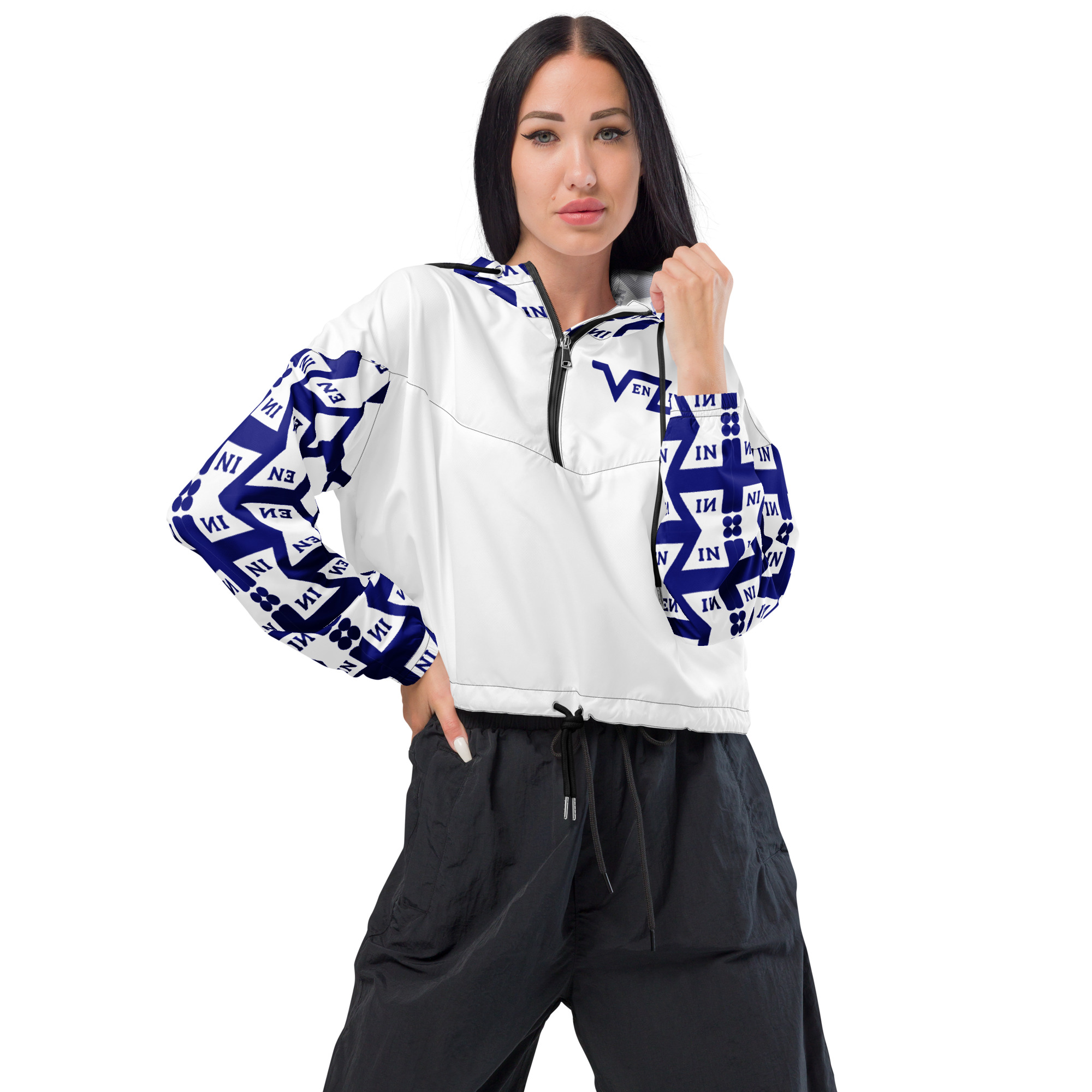 VENZINI BLUE – White Women’s cropped windbreaker