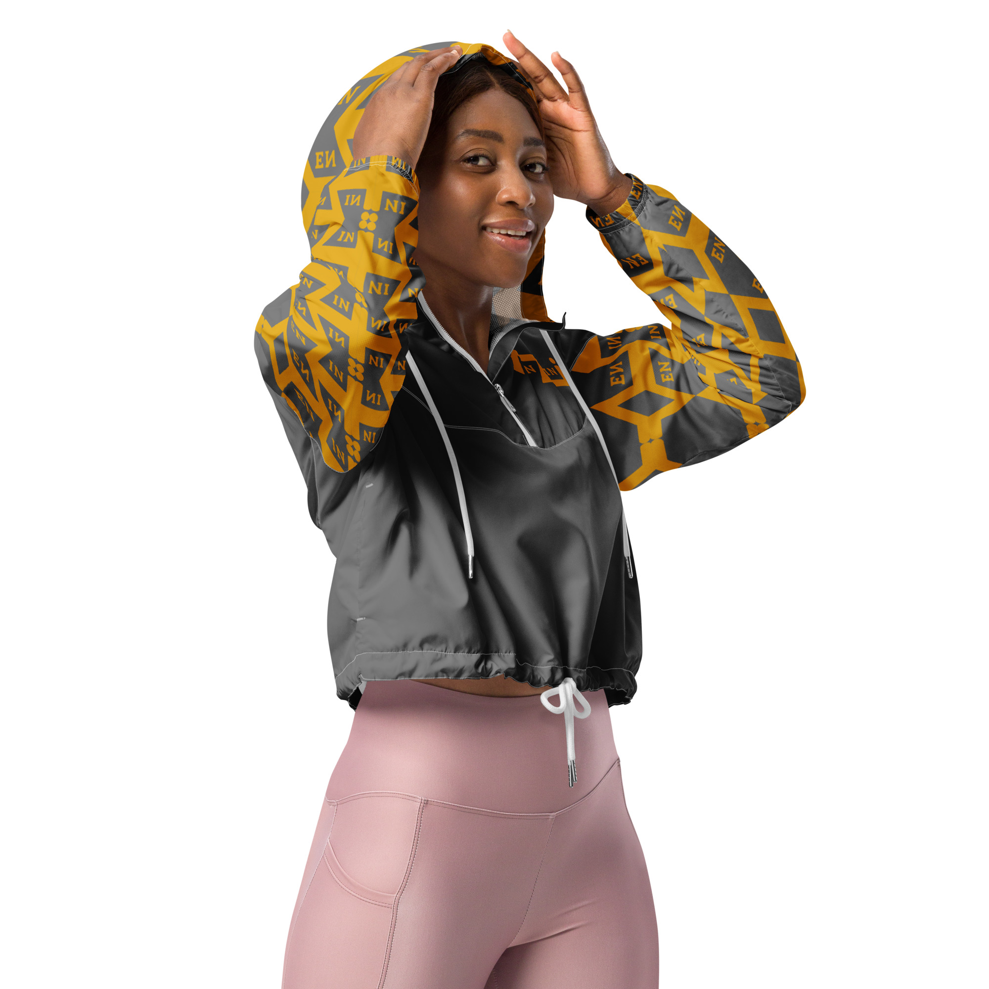 Hike in style without the rain getting in the way—this cropped windbreaker is lightweight, waterproof, and suitable for every kind of adventure. Features include side-slit pockets, breathable mesh lining, and adjustable drawcords on the hood and waist to support all your stylish outdoor looks.