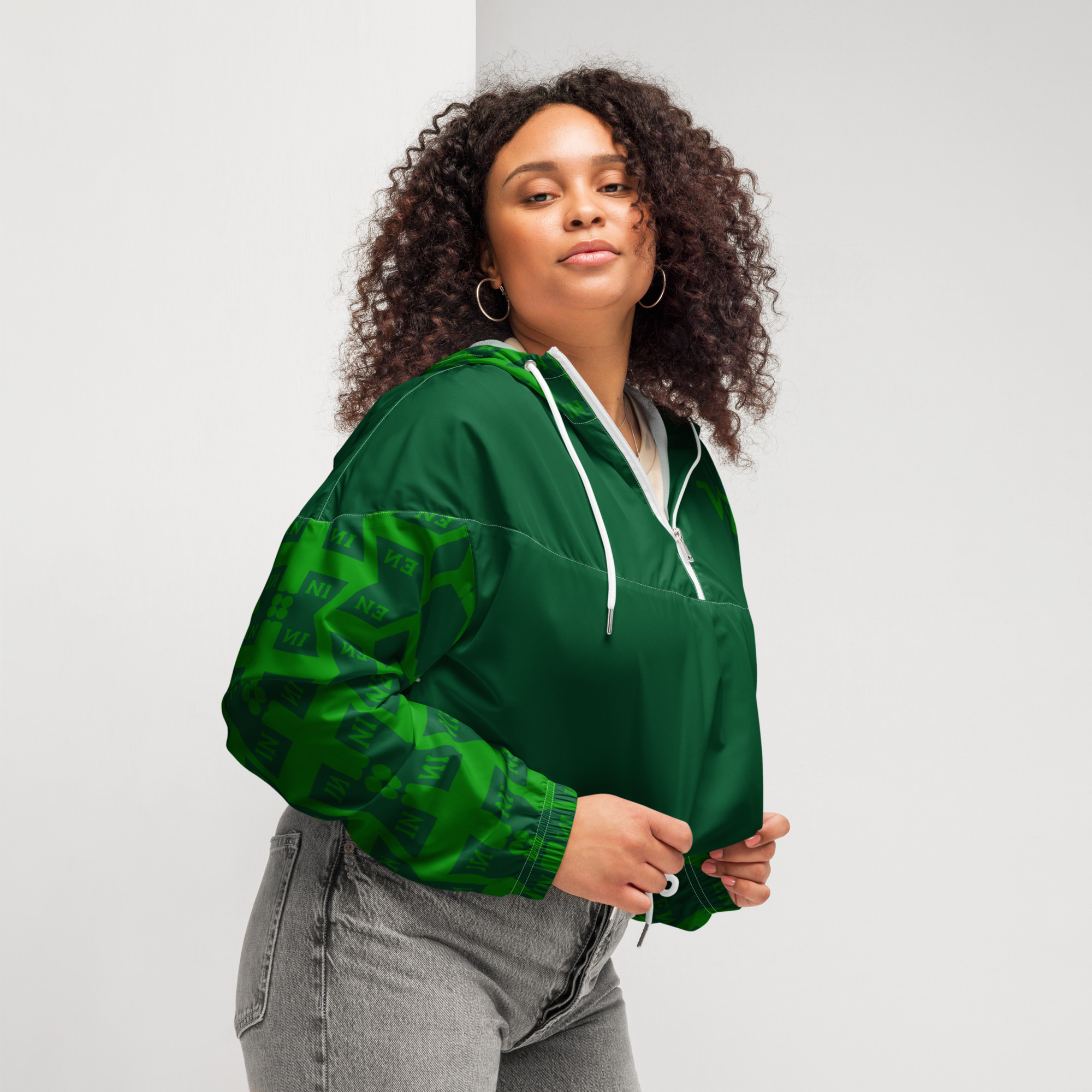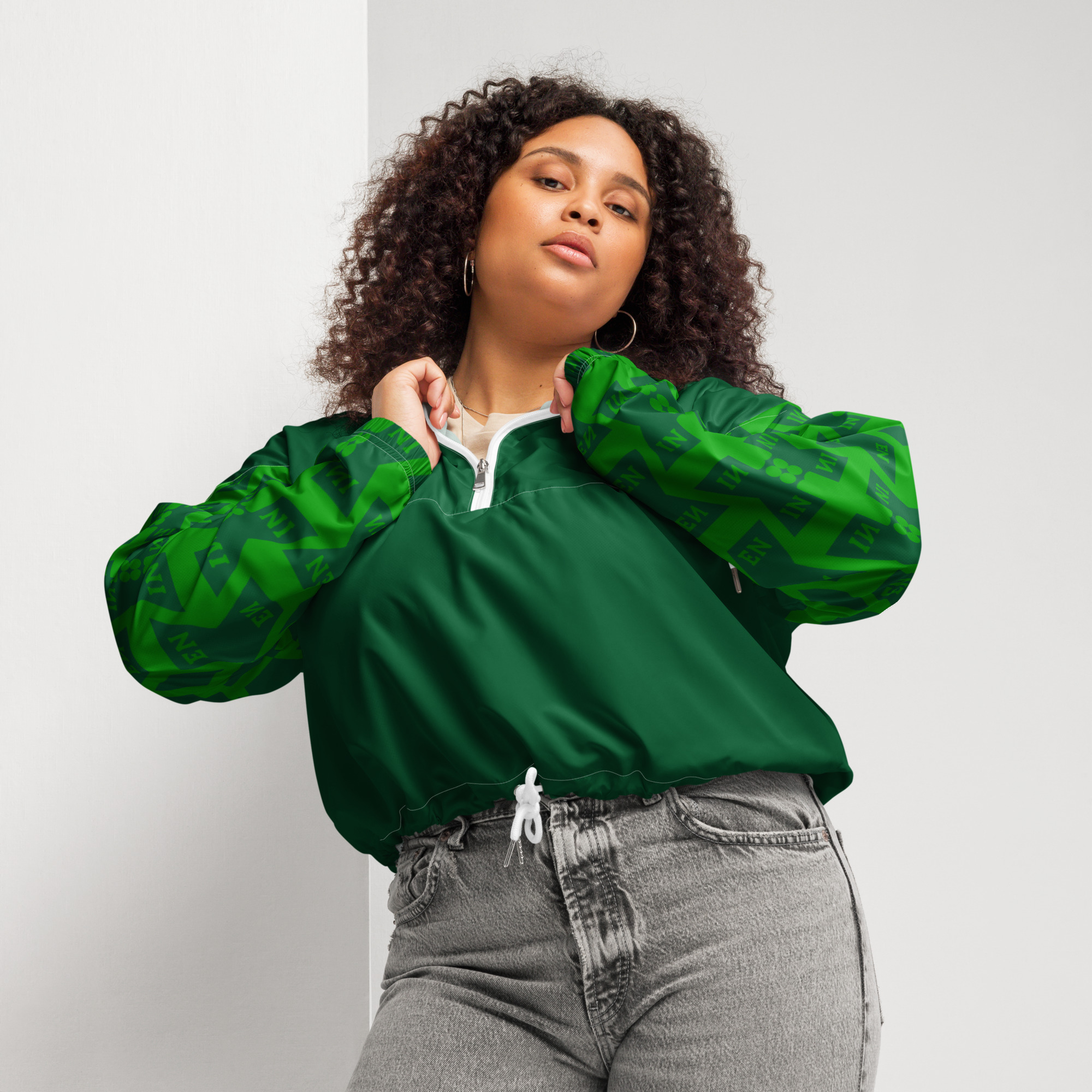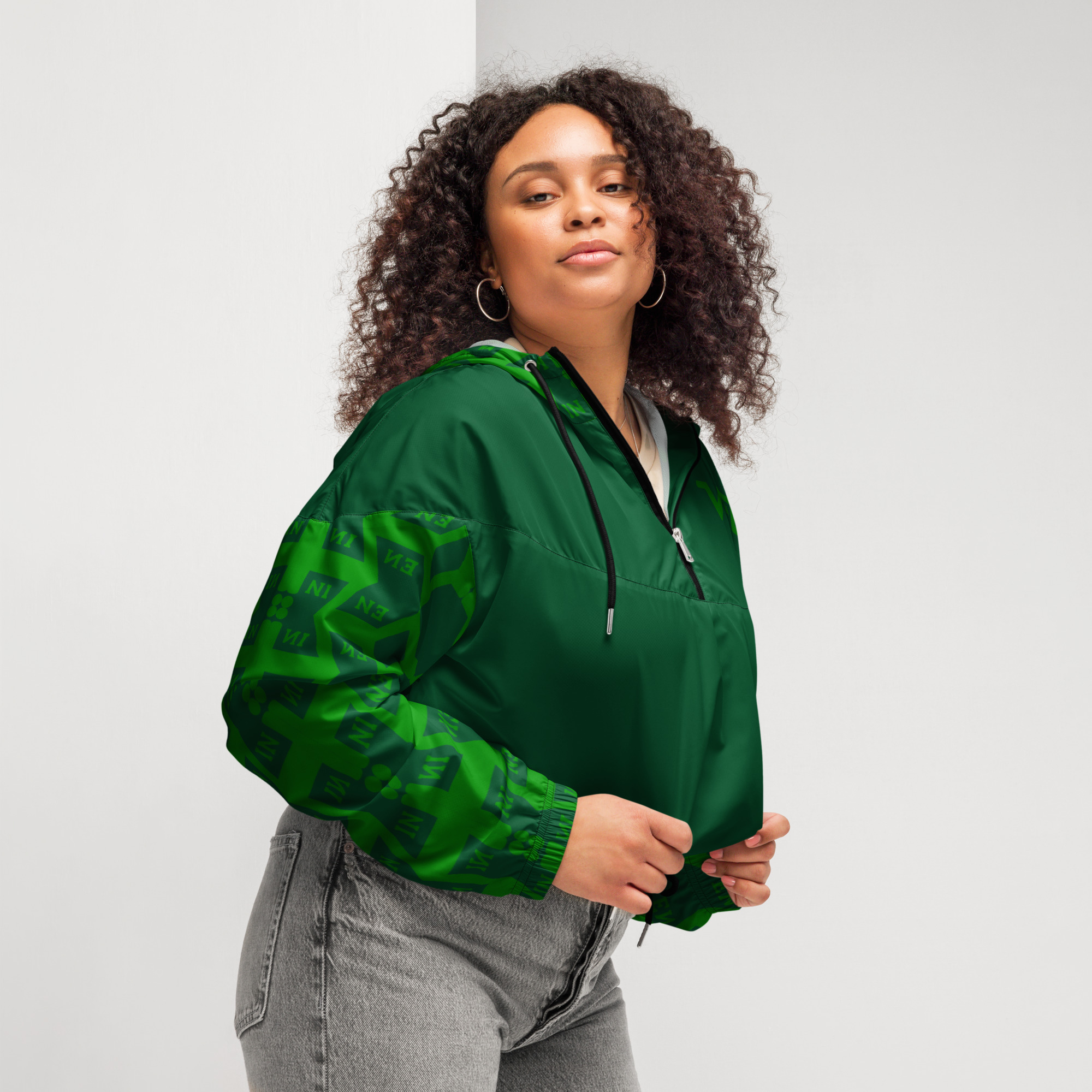 VENZINI GREEN – Forest Green Women’s Cropped Windbreaker