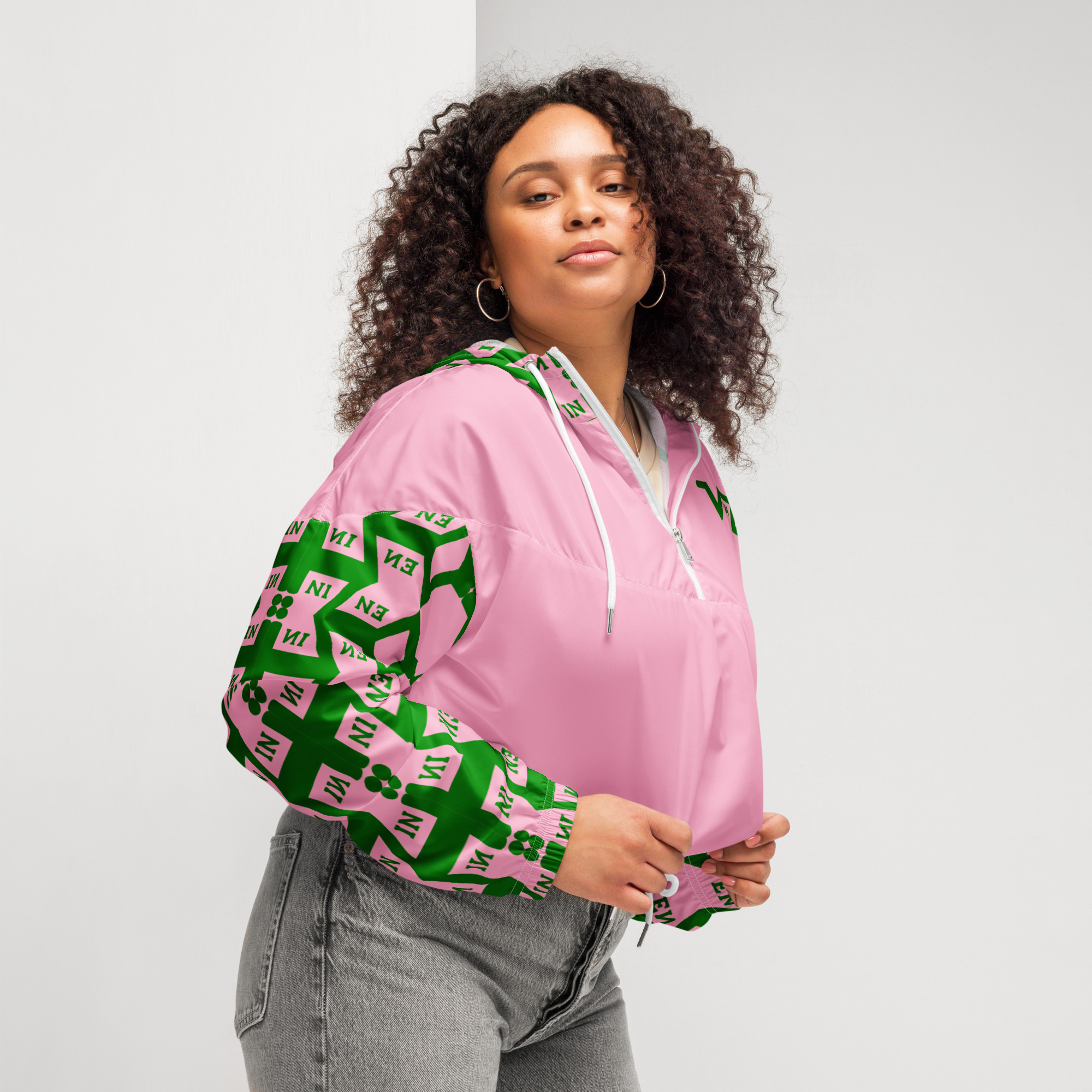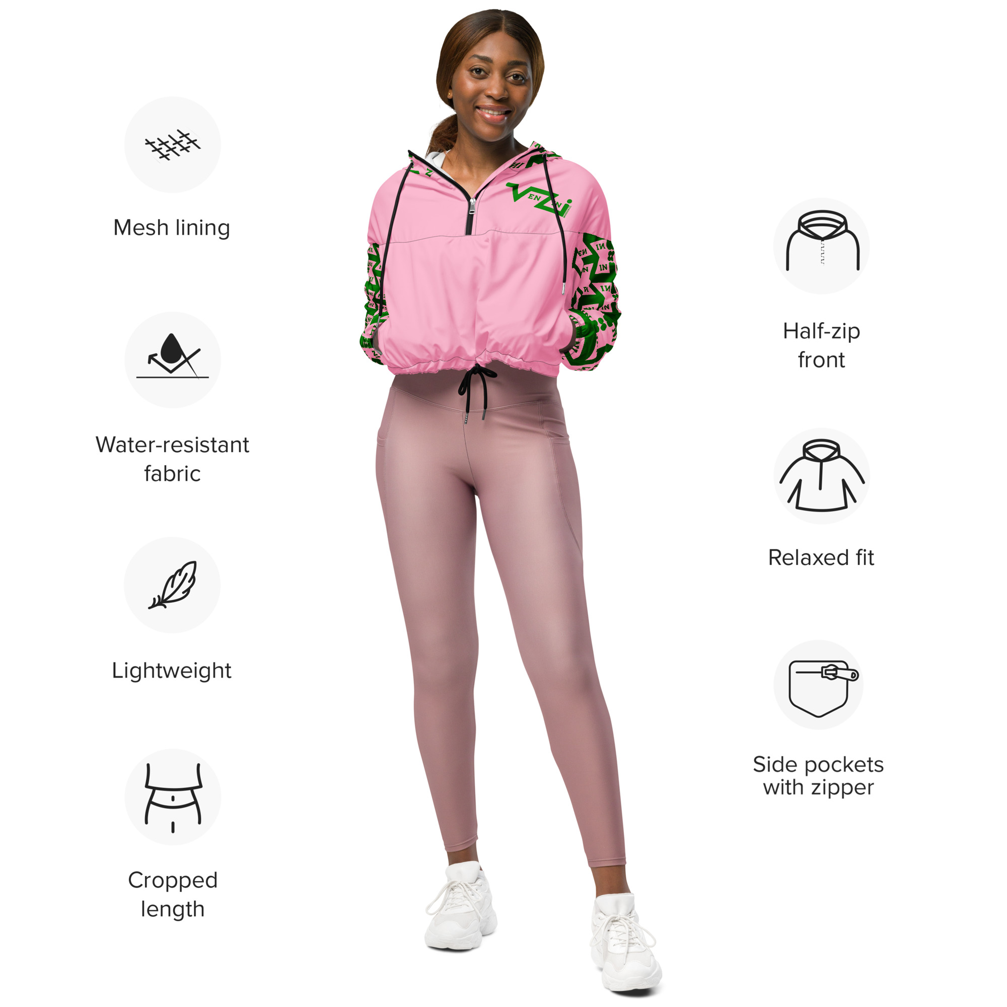 VENZINI GREEN – Pink Women’s Cropped Windbreaker