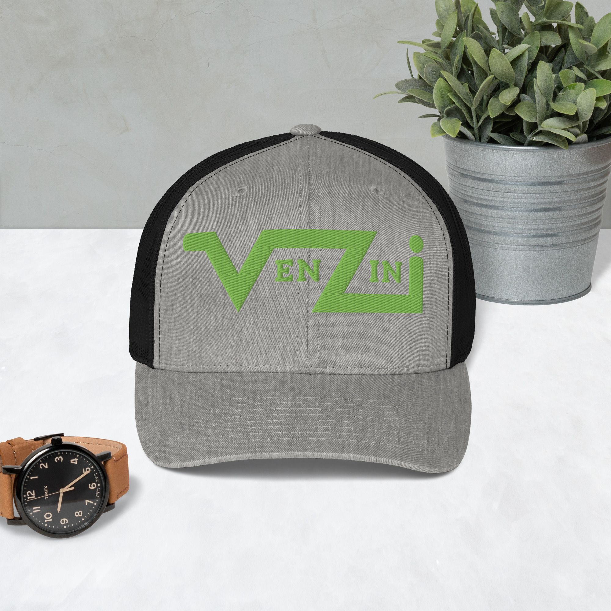 VENZINI GREEN Trucker Cap / Embroidered Kiwi Green Logo