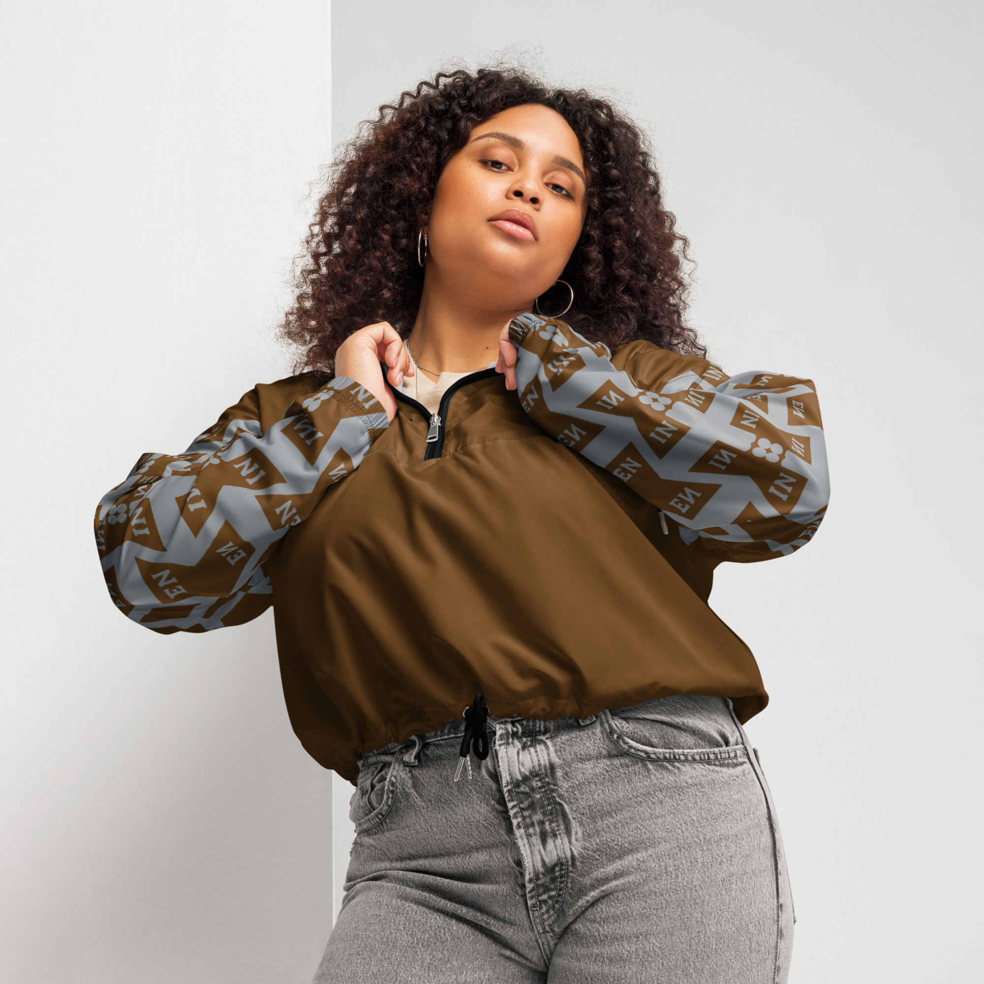 VENZINI GREY – Brown Women’s Cropped Windbreaker