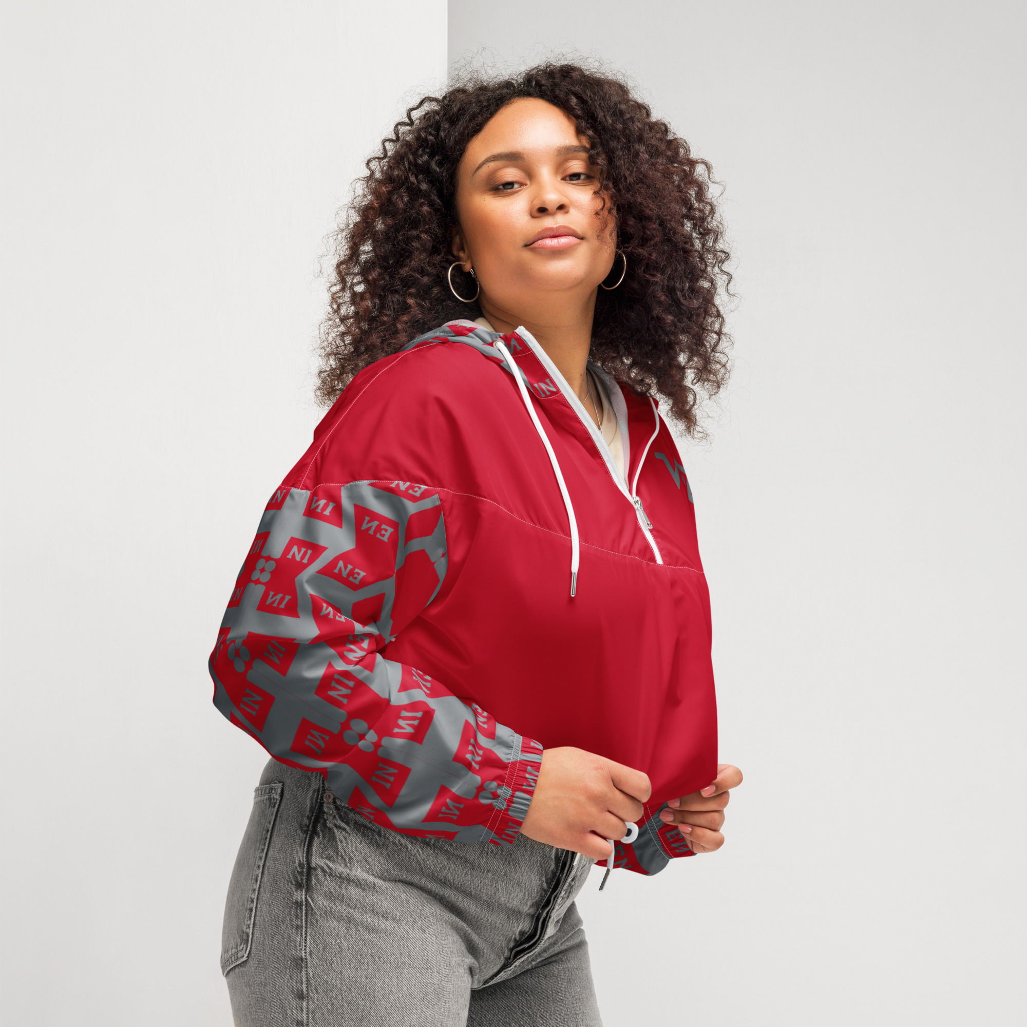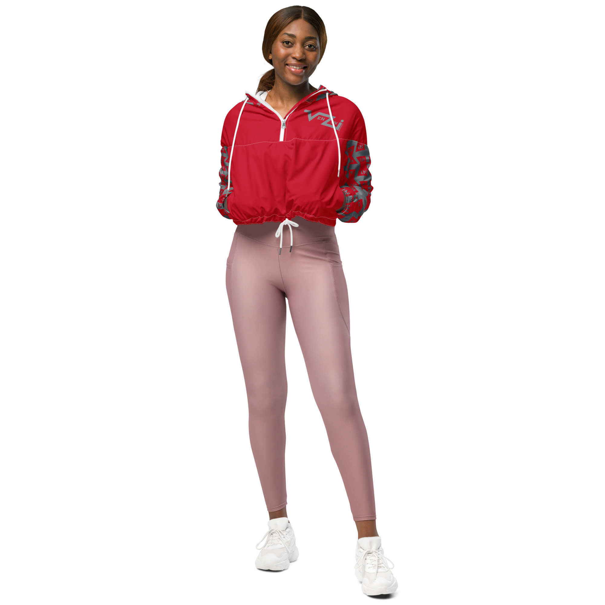 VENZINI GREY – Red Women’s Cropped Windbreaker