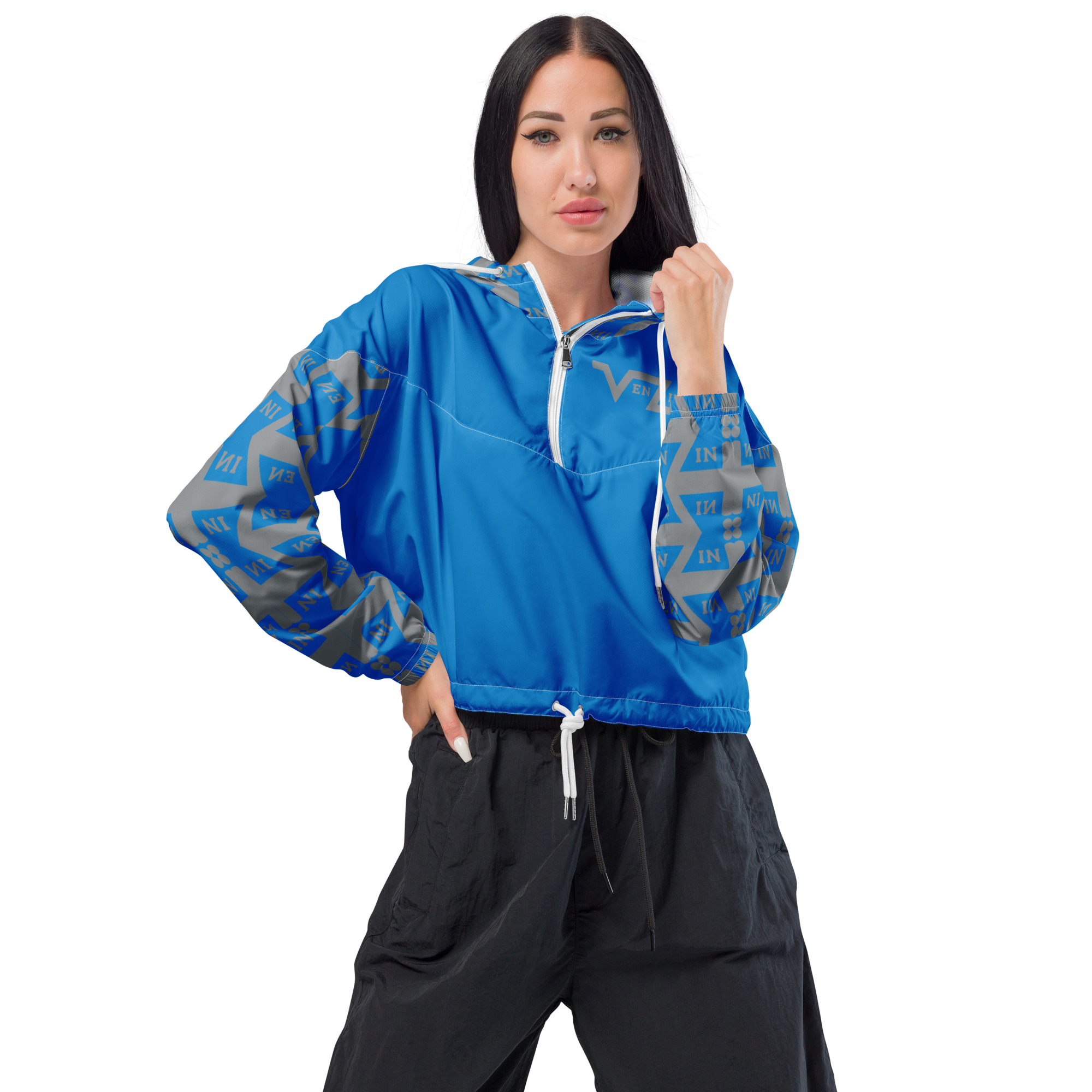 VENZINI GREY – Royal Blue Women’s Cropped Windbreaker