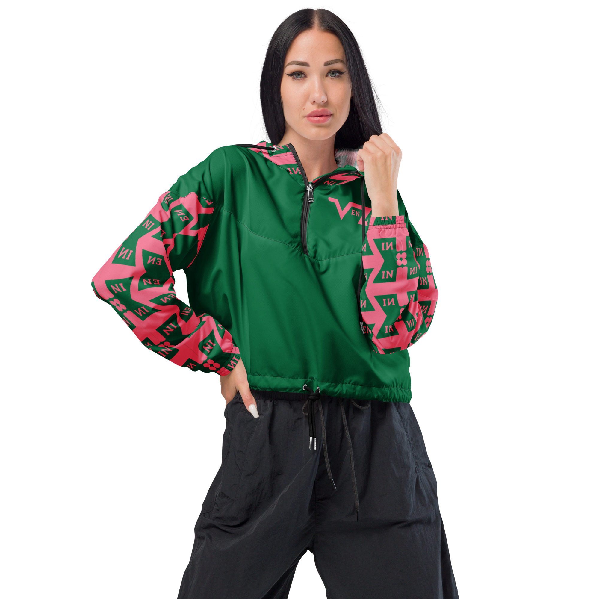 VENZINI PINK – Jewel Green Women’s Cropped Windbreaker