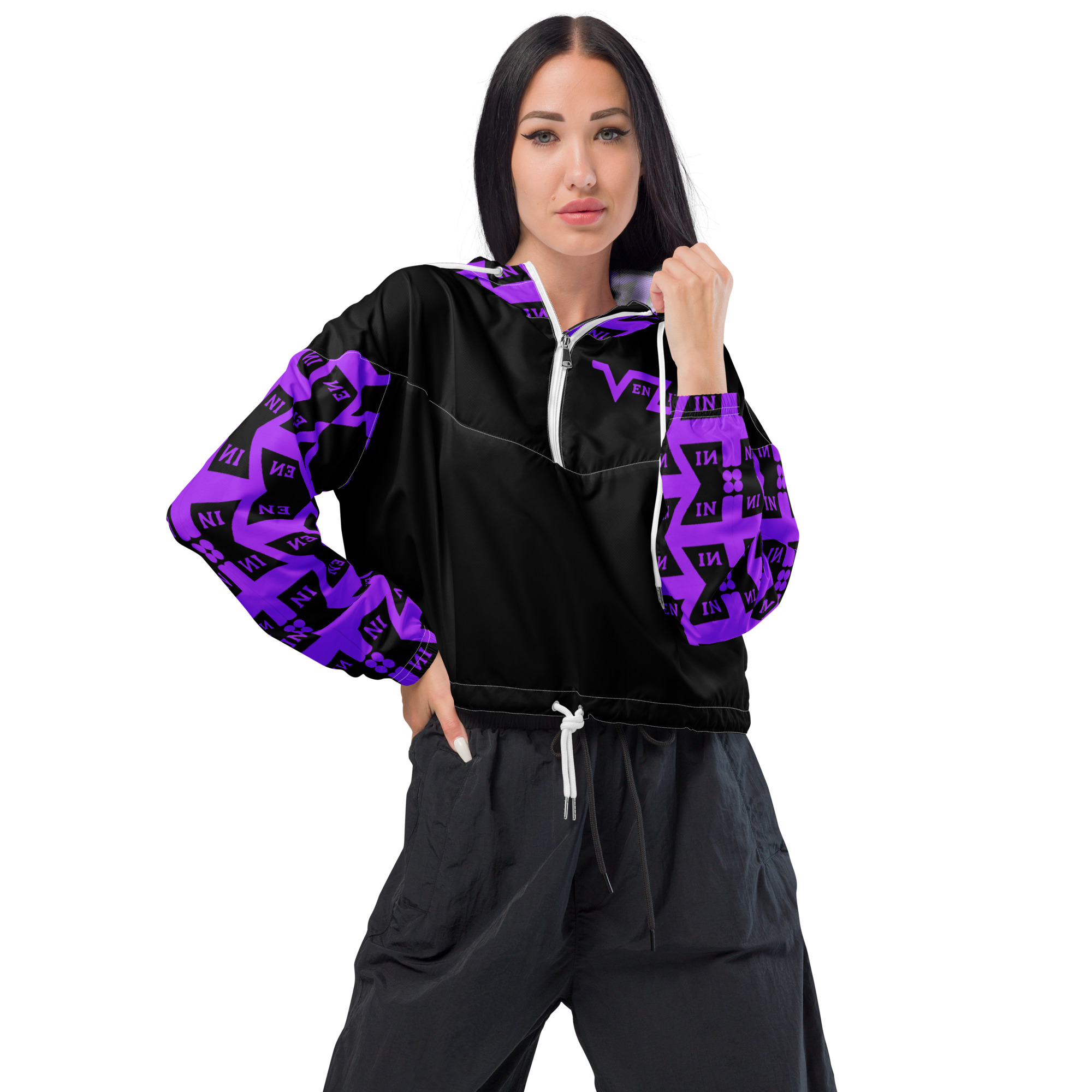 VENZINI PURPLE – Black Women’s Cropped Windbreaker