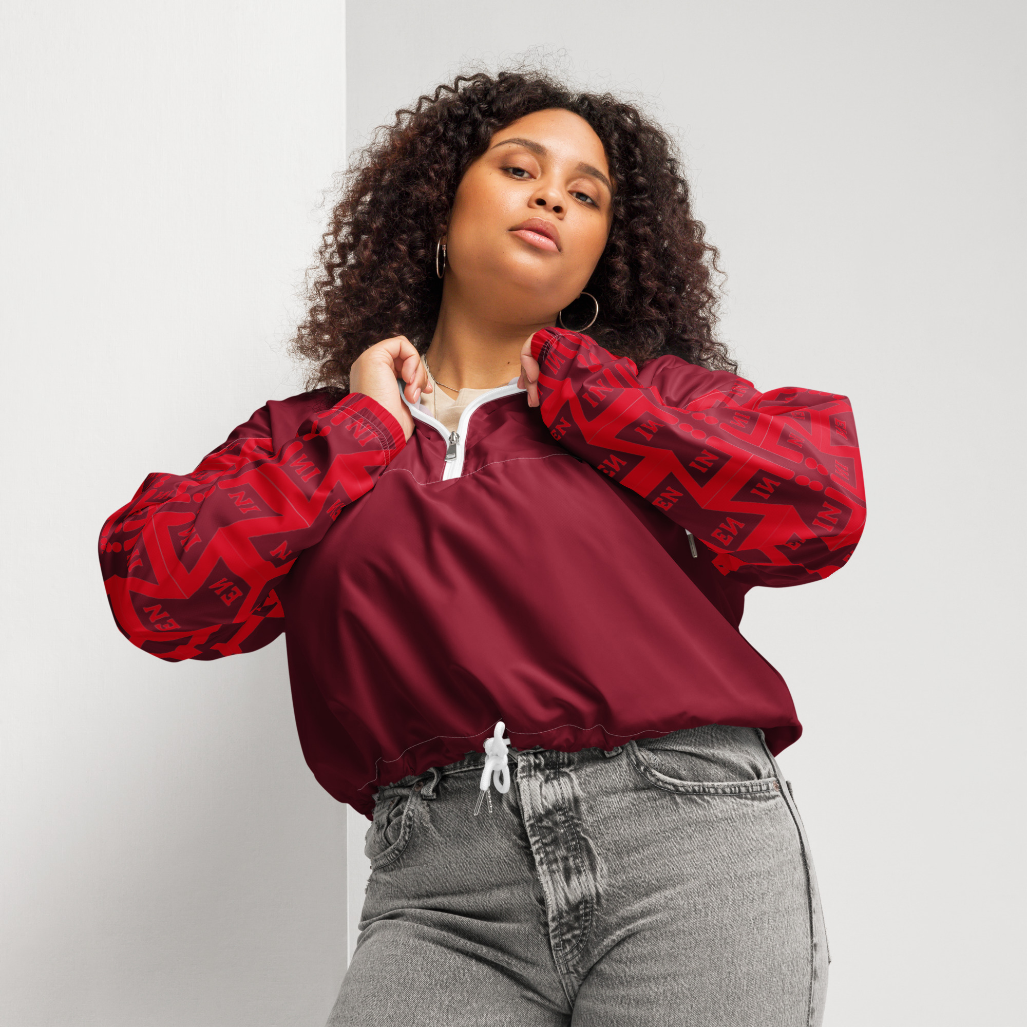 VENZINI RED – Burgundy Women’s cropped windbreaker