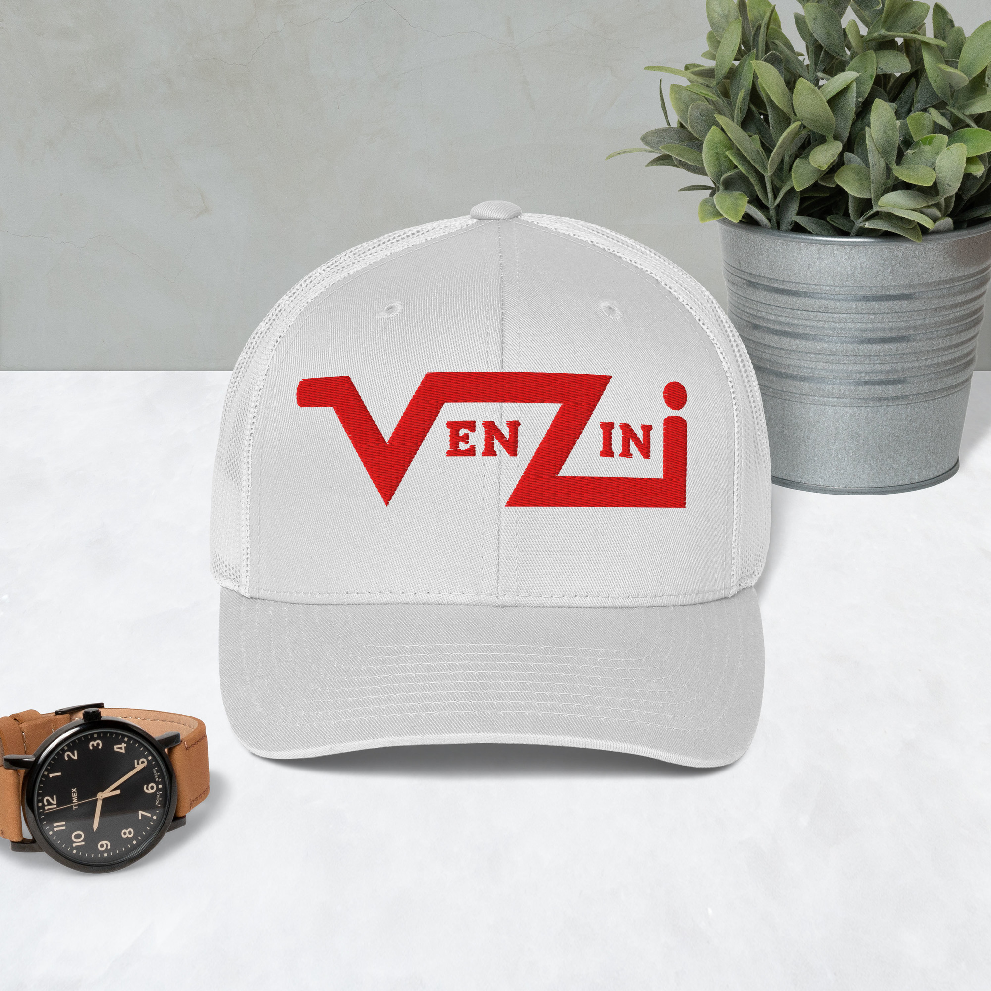 VENZINI RED Trucker Cap / Embroidered Red Logo