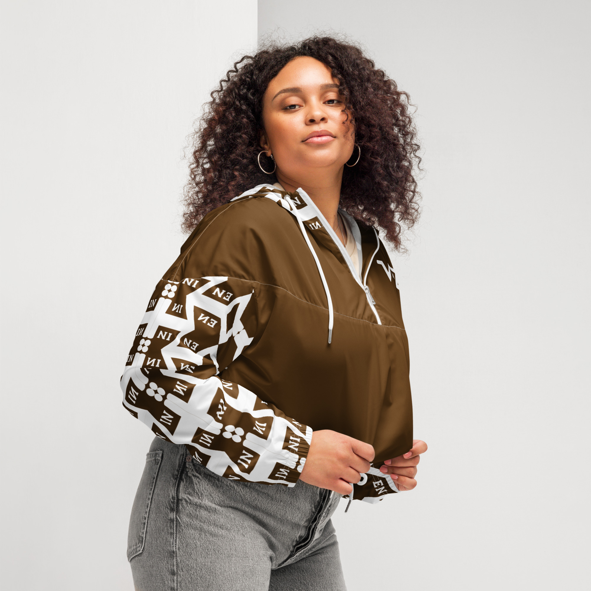Be the first to review “VENZINI WHITE – Brown Women’s Cropped Windbreaker”