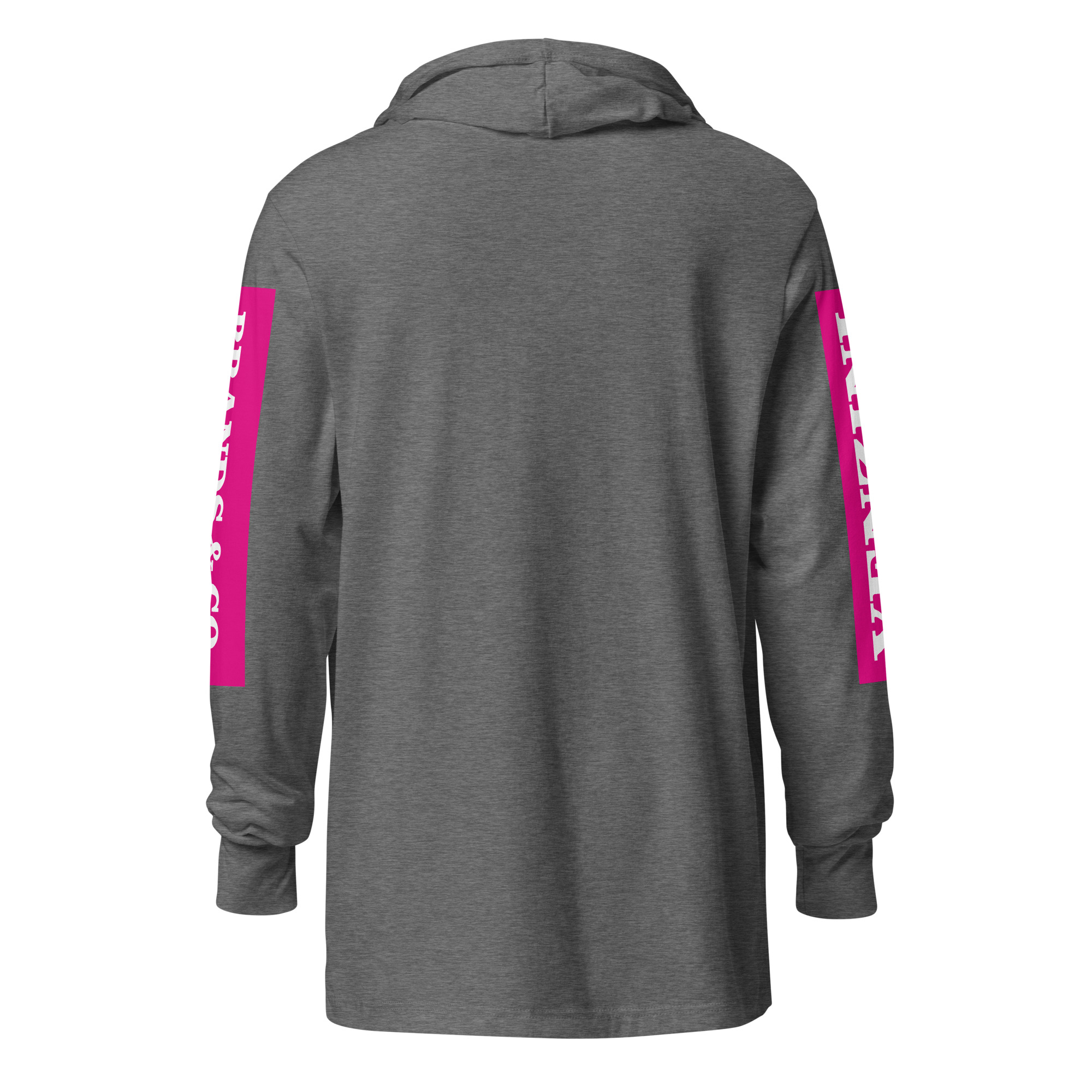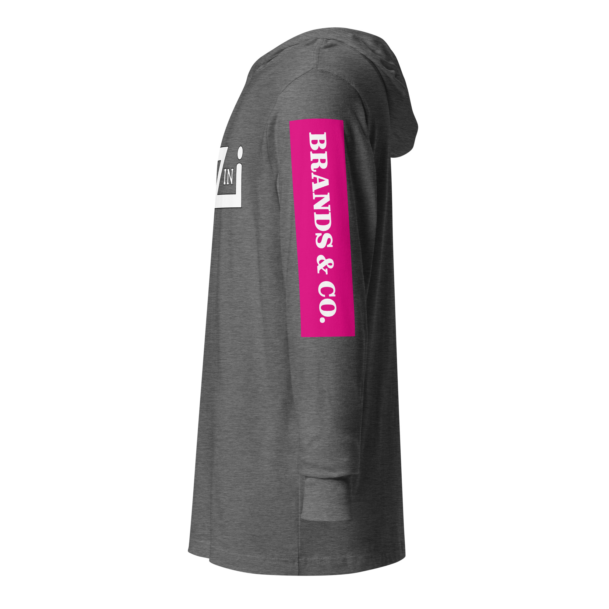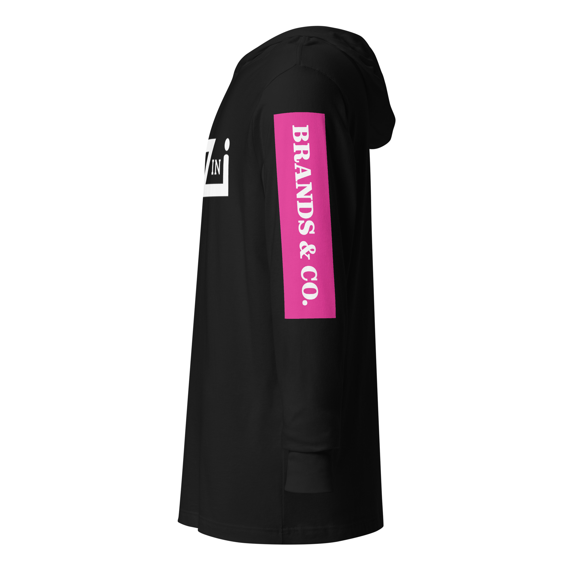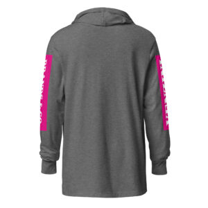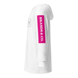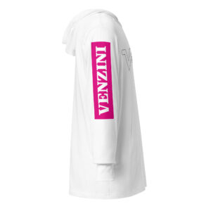 VENZINI WHITE – Hooded Long-Sleeve Tee w/Fuchsia Pink Sleeve Background)